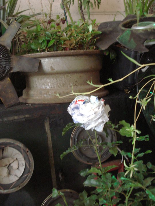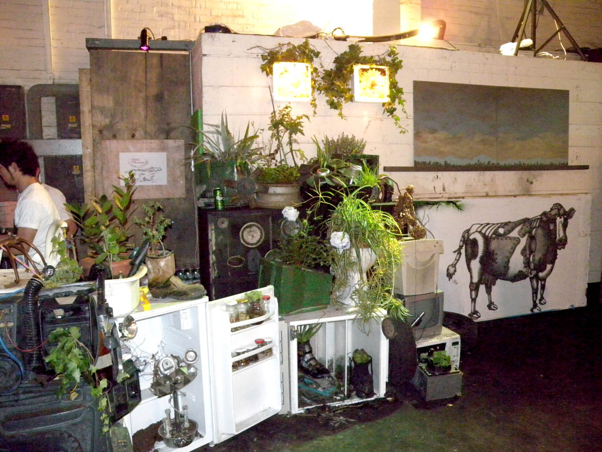 The Synthetic Gardens got the opportunity during Hackney WickED Festival 2010 to install in the main bar and stage area. Part drinking den, part gallery, the old mechanics warehouse was a perfect urban setting for the Gardens.